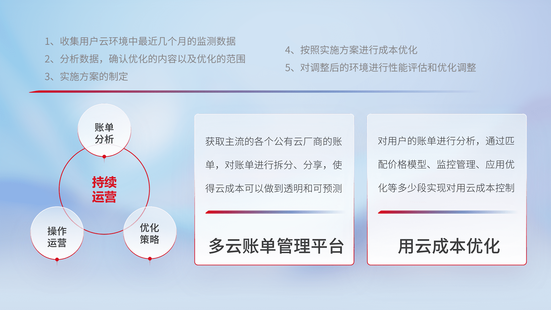 运用智能化工具分析云资源,,,提供日常费用可视化工具,,,,自动账单拆分,,成本优化云上费用,,,降本增效。。